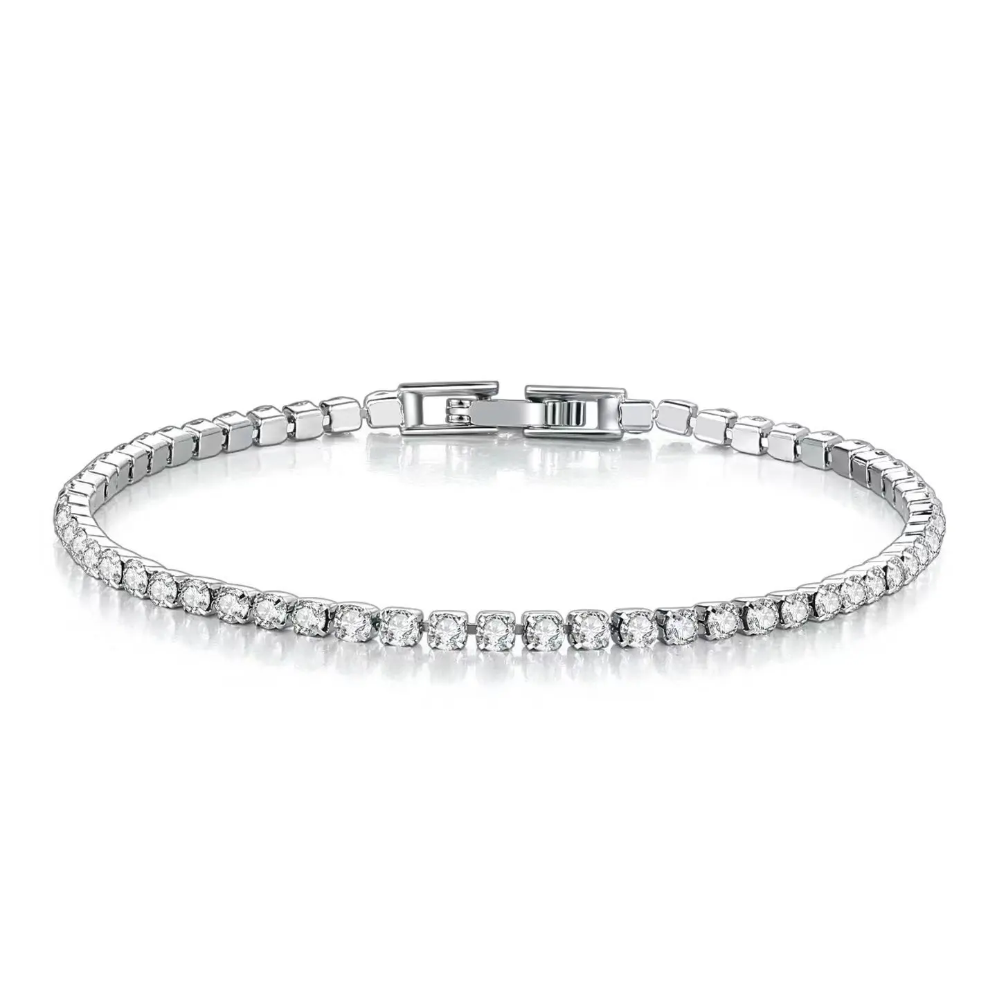2pcs Simple And Stylish Fully Inlaid Micro-inlaid Water Diamond 3mm Cubic Zirconia Classic Tennis Bracelet