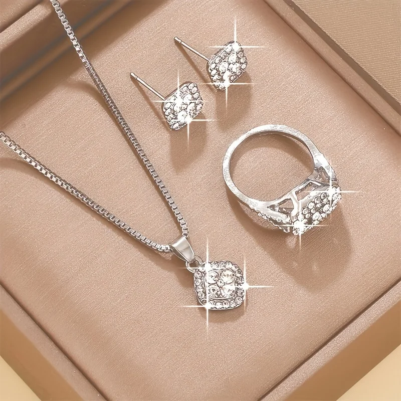 Illuminate your style with The Lucent Cube Pendant Necklace, a truly classic piece designed for elegance and versatility. This exquisite pendant necklace features a captivating square (cube-inspired) design crafted from a fine metal (Zinc Alloy), offering a sleek finish that complements its timeless structure. The centerpiece is meticulously set with dazzling rhinestones, ensuring that the light catches every angle with maximum sparkle. Perfect for celebrating a cherished anniversary or simply enhancing your everyday glamour, this necklace is a stylish, fashion-forward choice that is compatible with any outfit and occasion.